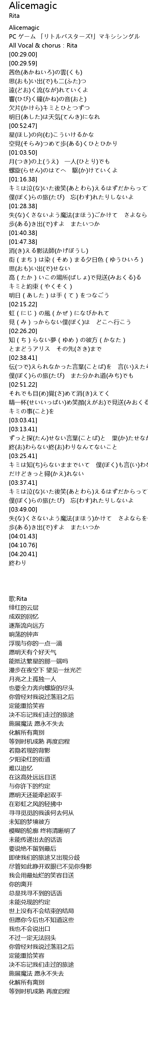| [00:24.00] | All Vocal chorus: Rita |