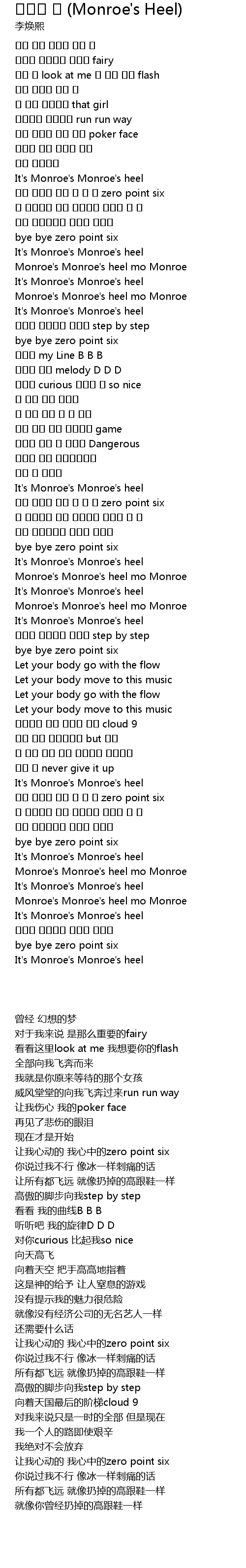 | [02:19.120] | Monroe' s Monroe' s heel mo Monroe |
