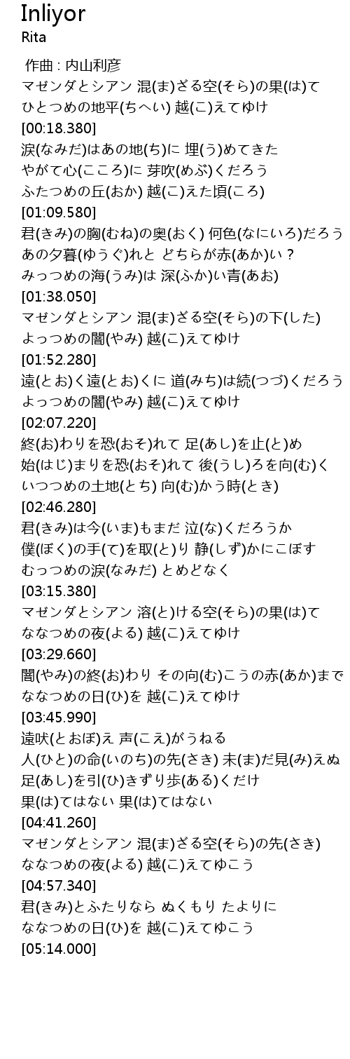 | [03:37.500] | ななつめの日(ひ)を 越(こ)えてゆけ |