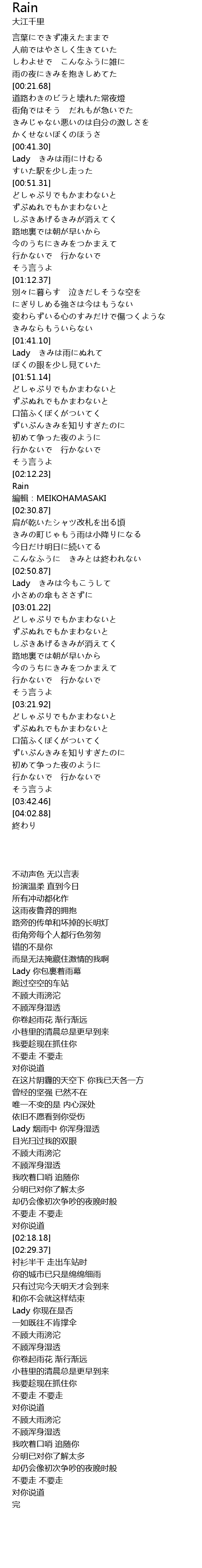 | [03:03.12] | どしゃぶりでもかまわないと |