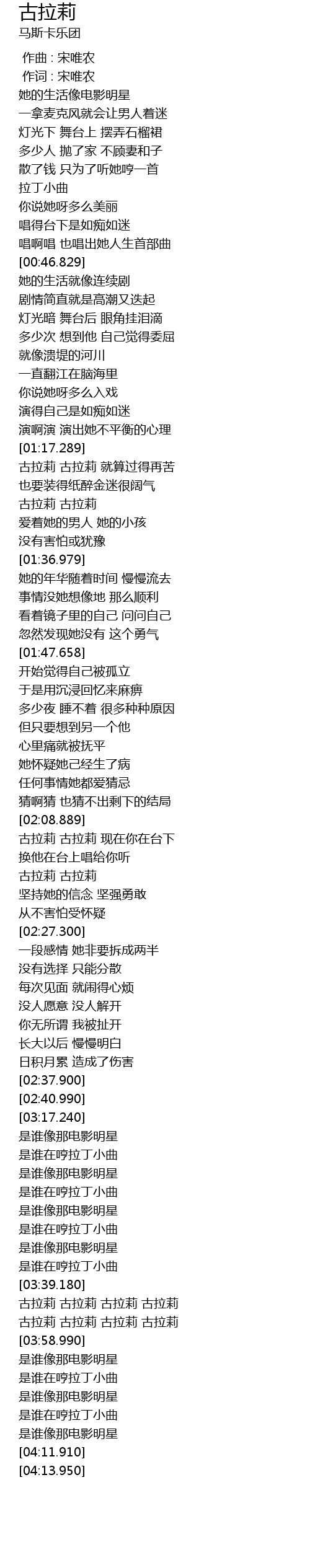 | [03:49.900] | 古拉莉 古拉莉 古拉莉 古拉莉 |