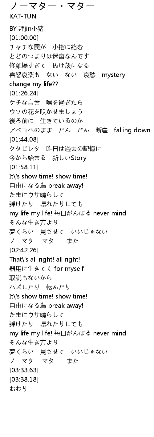 | [02:13.13] | my life my life! 毎日がんばる never mind |
