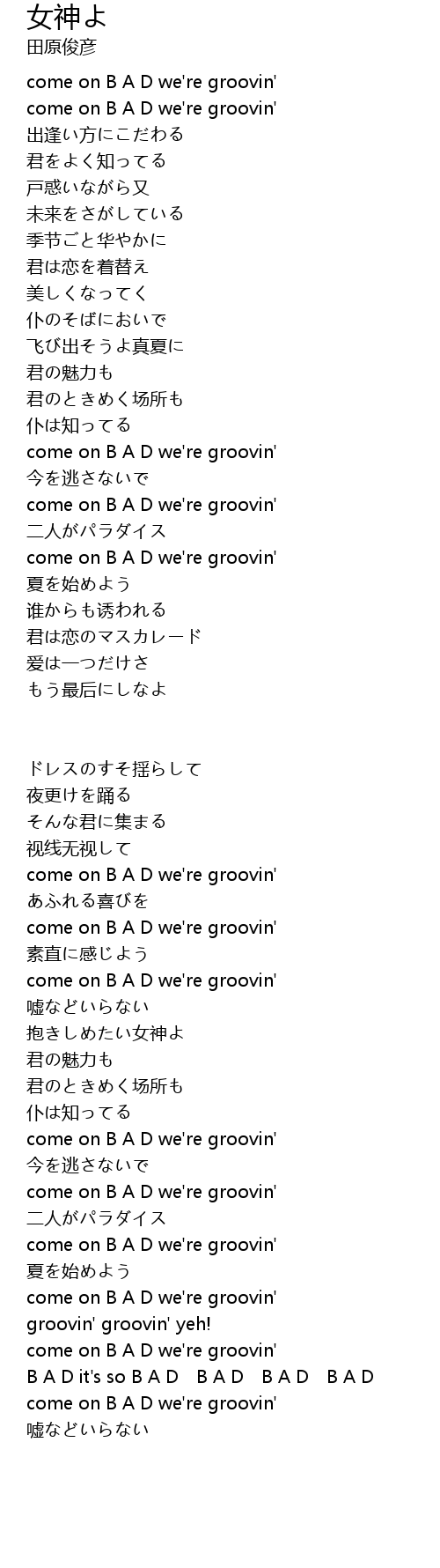 | Song | 女神よ |