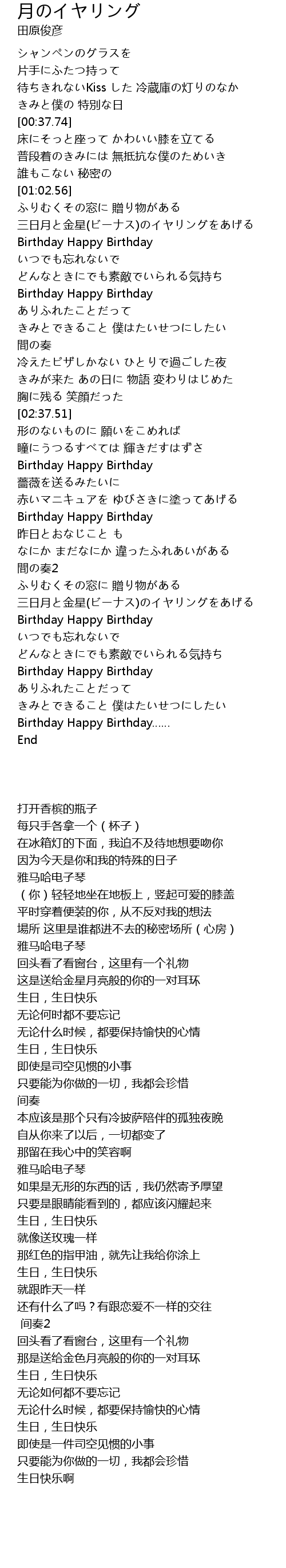 | [04:39.60] | Birthday Happy Birthday…… |