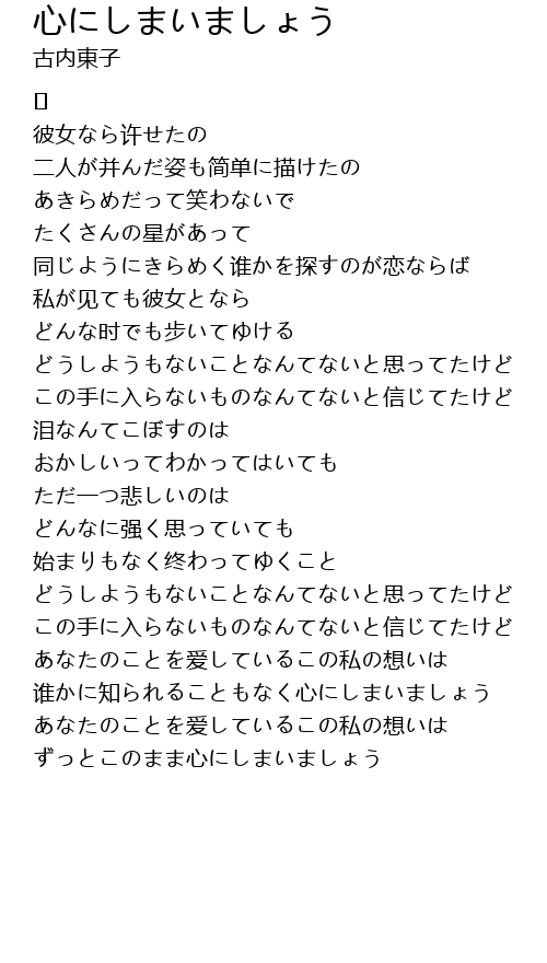 | Song | 心にしまいましょう |