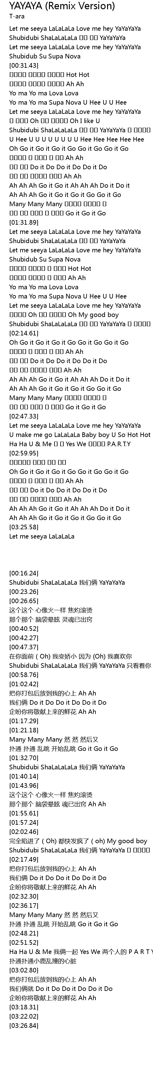| [00:23.26] | Let me seeya LaLaLaLa Love me hey YaYaYaYa |