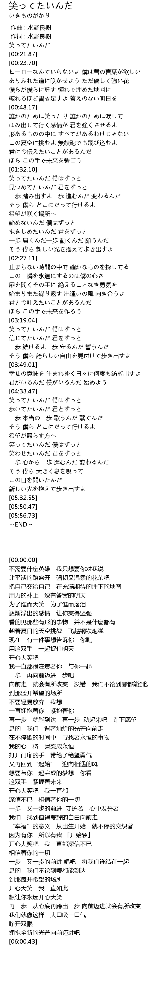 | [00:00.00] | 笑ってたいんだ |