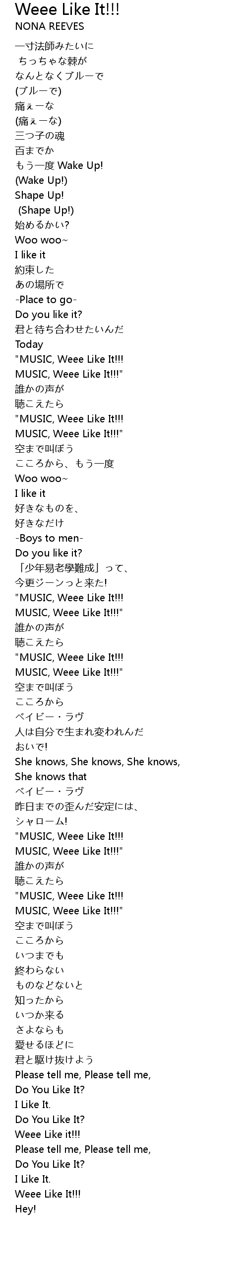| [02:22.300] | MUSIC, Weee Like It!!!" |