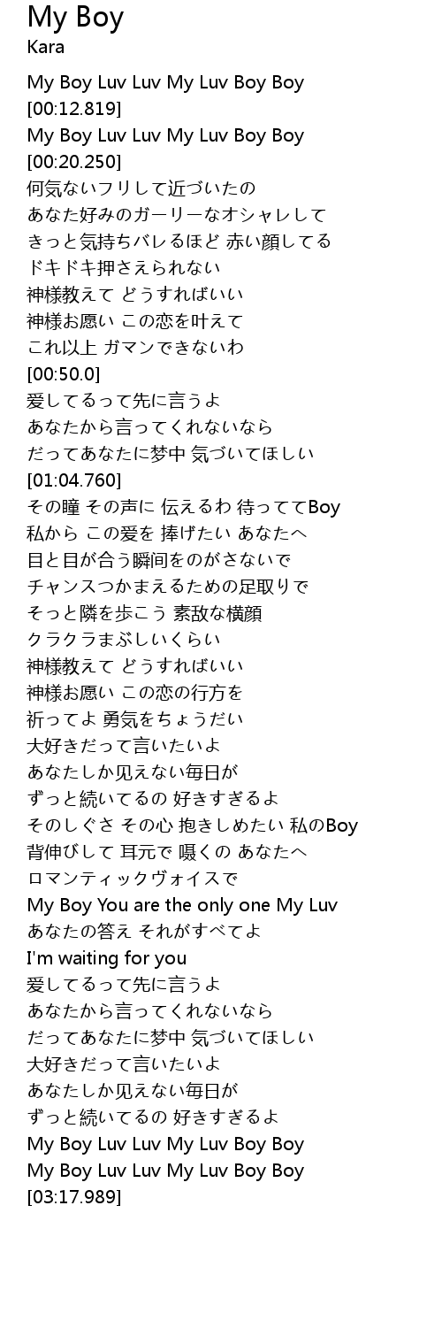 | [03:10.869] | My Boy Luv Luv My Luv Boy Boy |