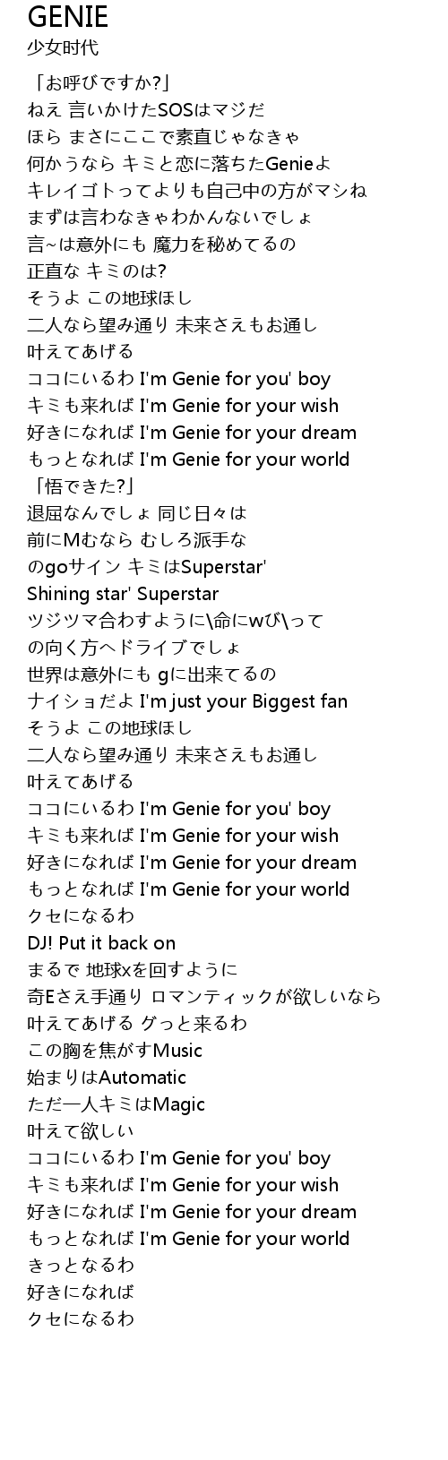 | [02:11.540] | lai I' m Genie for your wish |