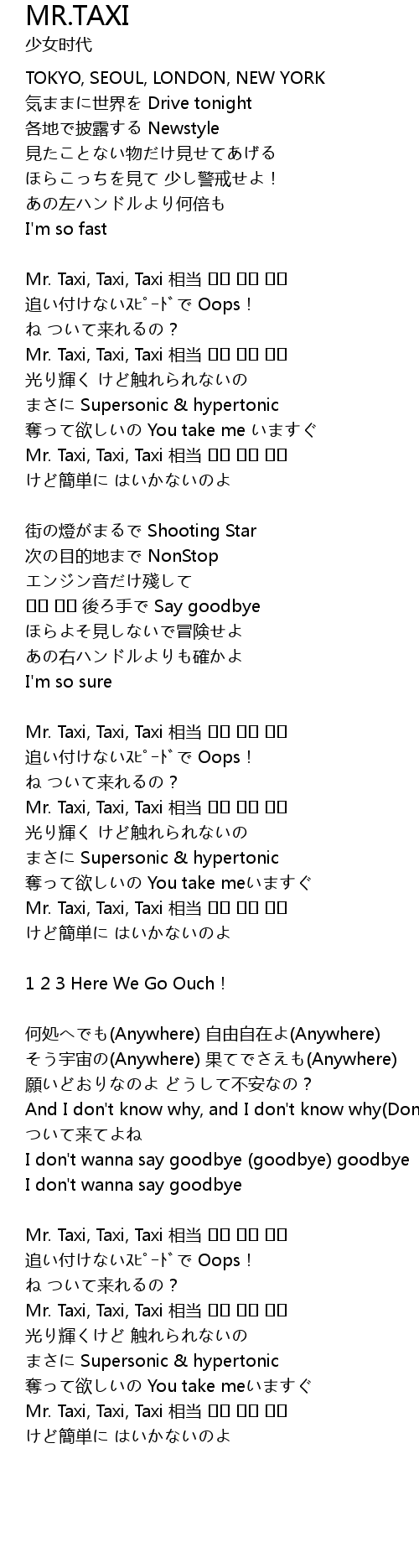 | Mr. Taxi, Taxi, Taxi 相当 즉시 즉시 즉시 | |