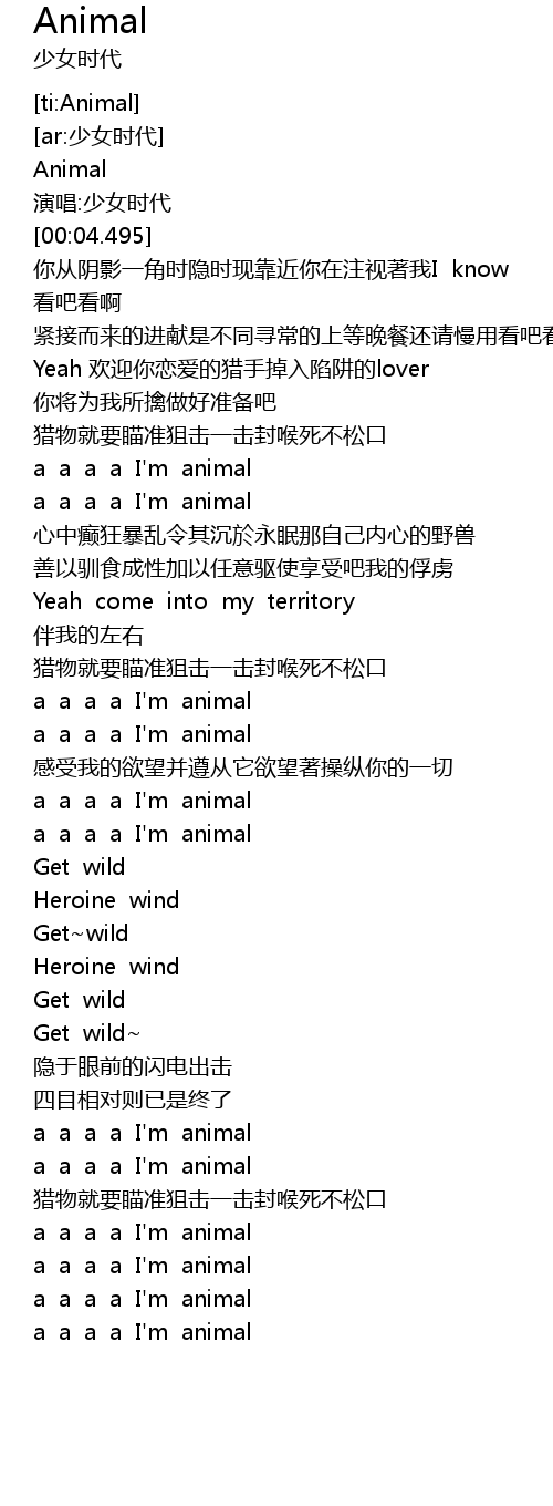 | [00:01.896] | yǎn chàng: shào nǚ shí dài |