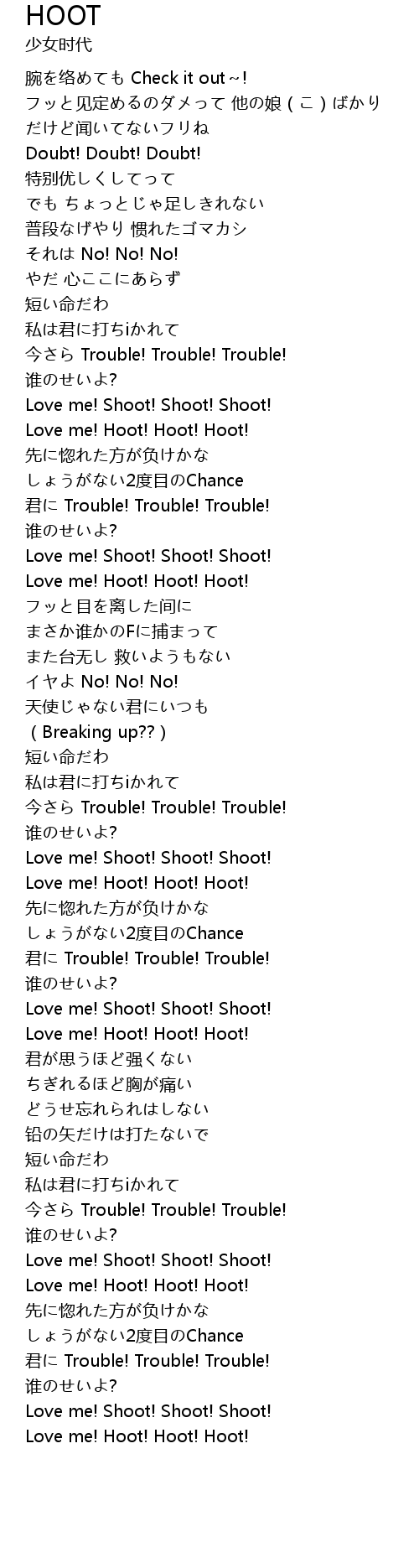 | [02:09.77] | Love me! Hoot! Hoot! Hoot! |