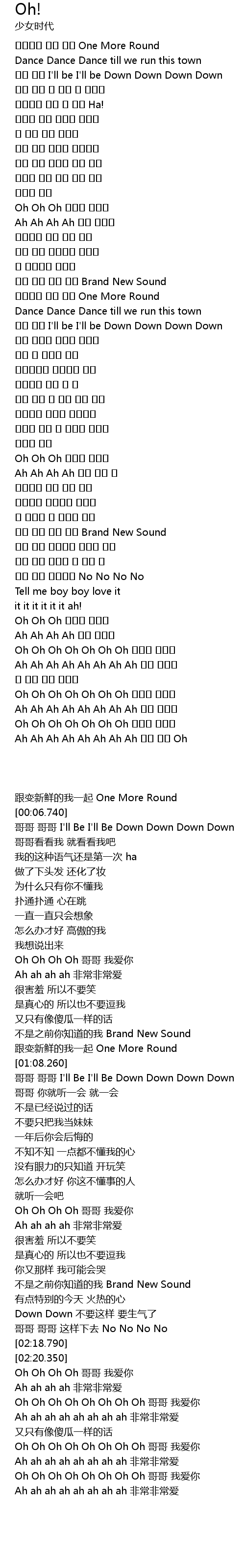 | [02:48.290] | Oh Oh Oh Oh Oh Oh Oh 오빠를 사랑해 |