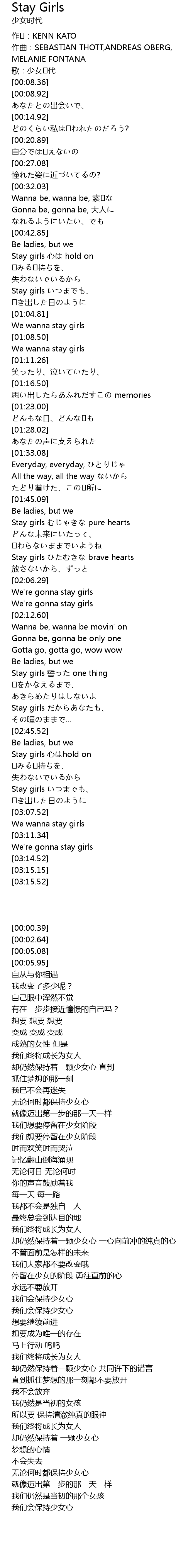 | [02:59.27] | Stay girls いつまでも、 |