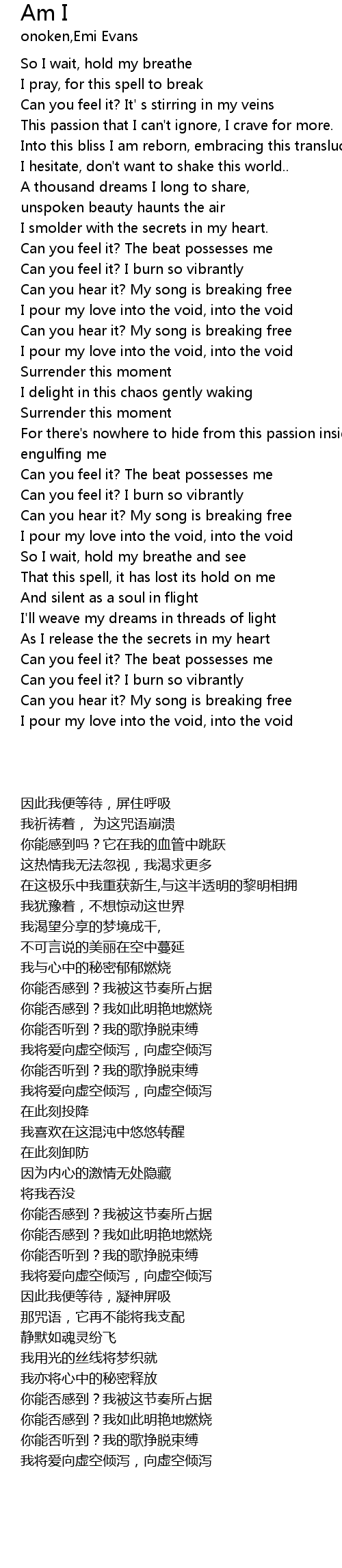 | [02:10.38] | Can you hear it? My song is breaking free |