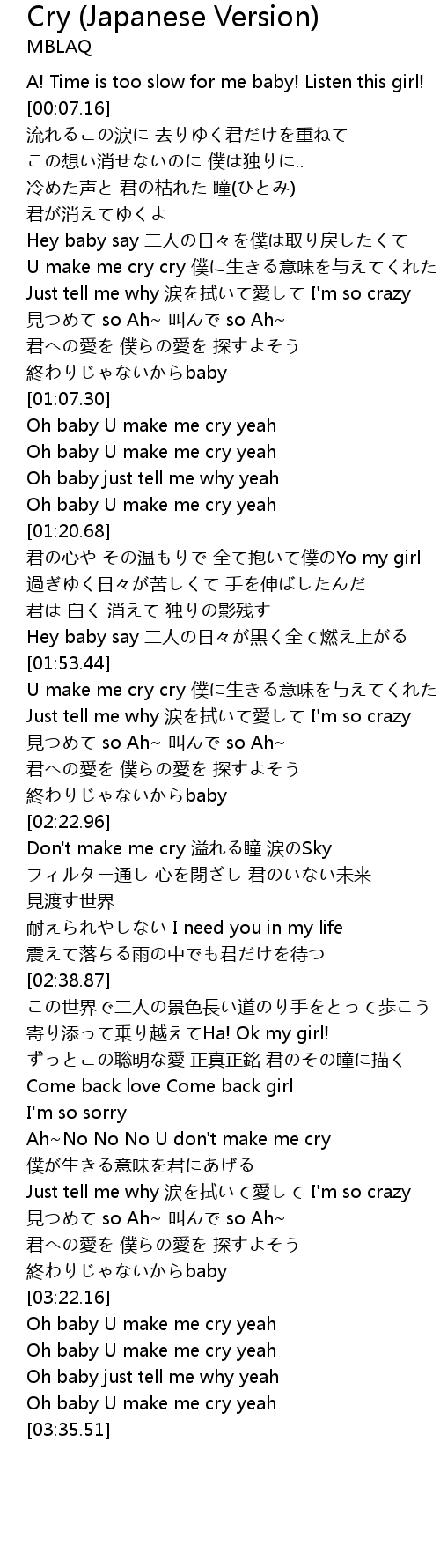 | [02:52.86] | Ah No No No U don' t make me cry |