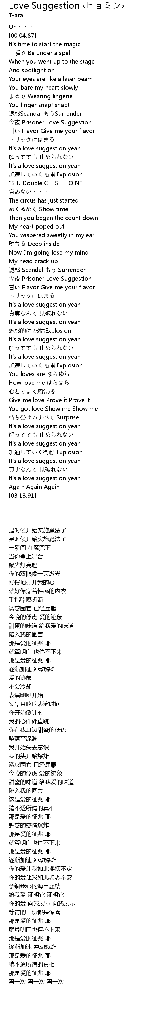 | [00:43.84] | 今夜 Prisoner Love Suggestion |