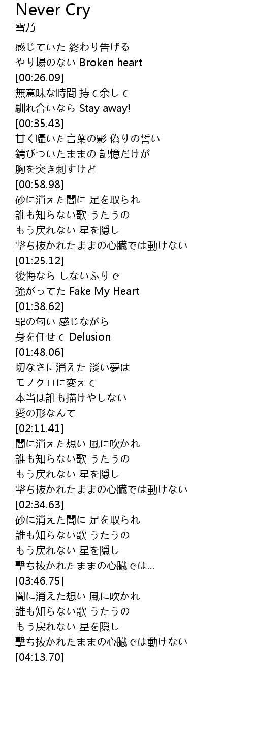 | [04:03.45] | 撃ち抜かれたままの心臓では動けない |