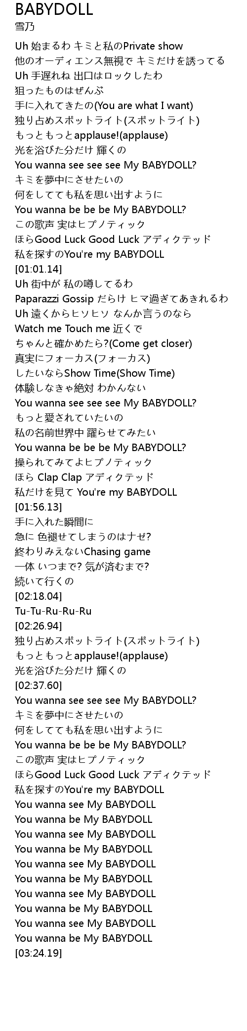 | [00:50.17] | You wanna be be be My BABYDOLL? |