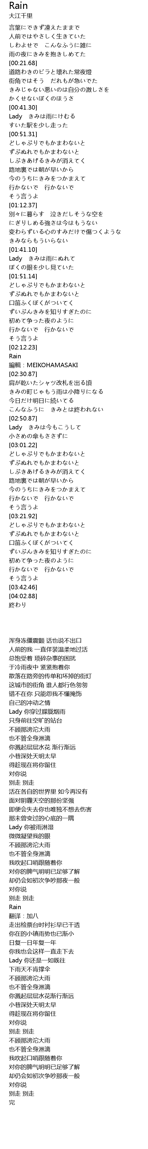 | [03:03.12] | どしゃぶりでもかまわないと |