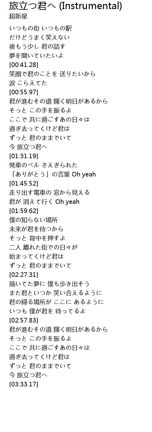 | [00:42.54] | 笑顔で君のことを 送りたいから |