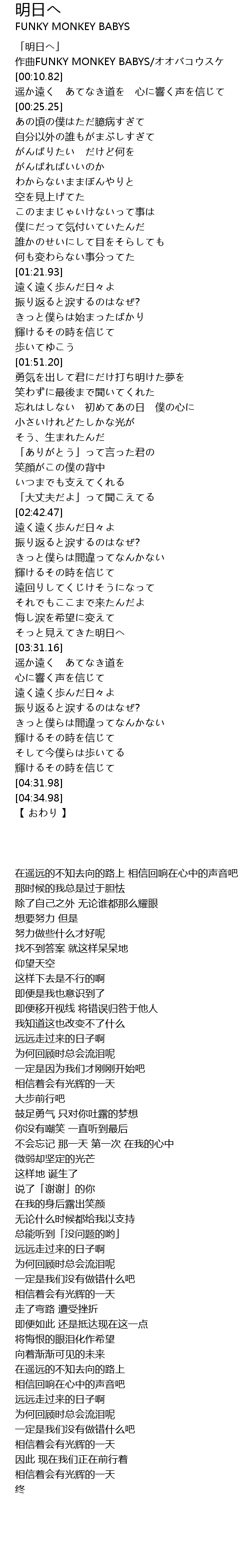 | [00:06.82] | zuo qu FUNKY MONKEY BABYS |