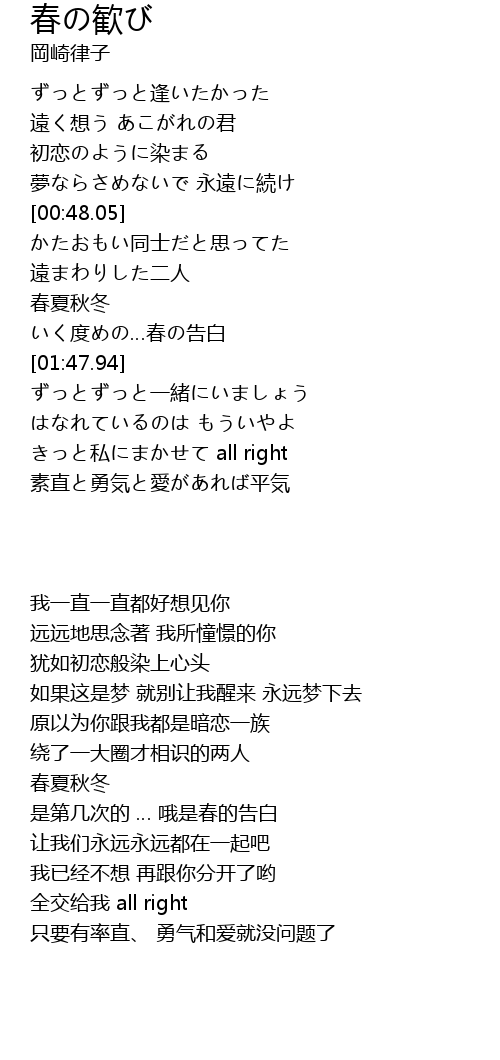 | [02:30.27] | ずっとずっと一緒にいましょう |