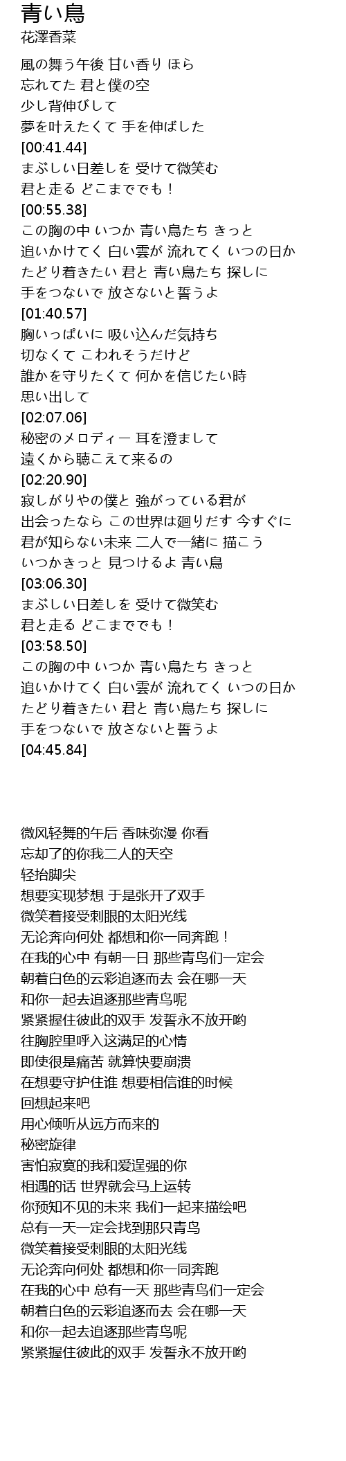 | [00:55.86] | この胸の中 いつか 青い鳥たち きっと |