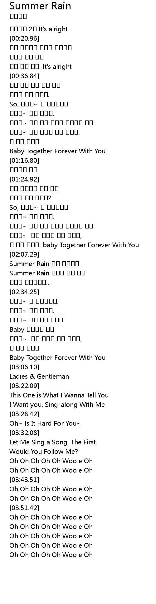 | [02:01.40] | 이 비를 맞으며, baby Together Forever With You |