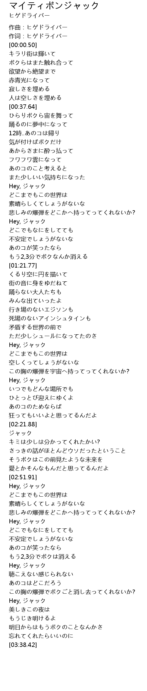 | [00:00.00] | 作曲:ヒゲドライバー |