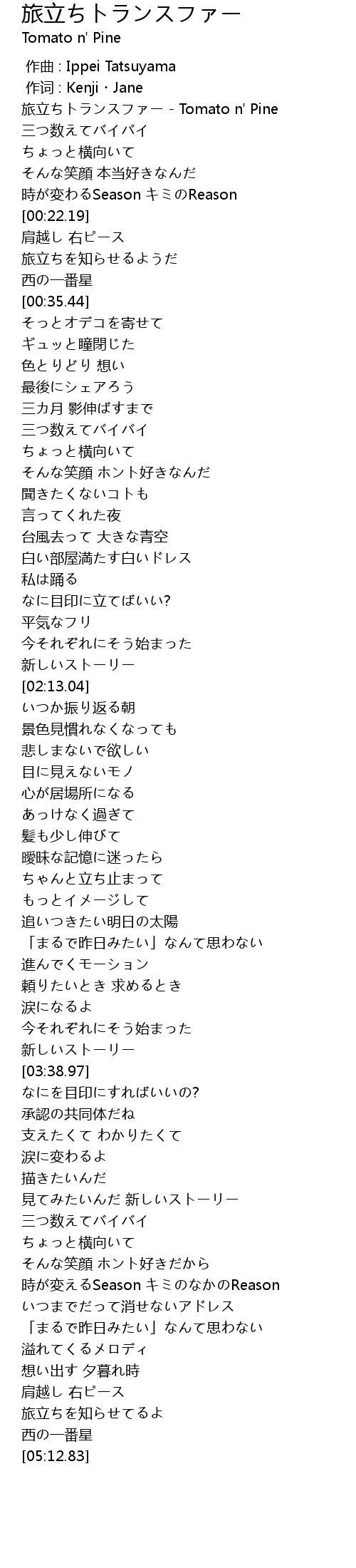 | [00:00.75] | 旅立ちトランスファー - Tomato n' Pine |