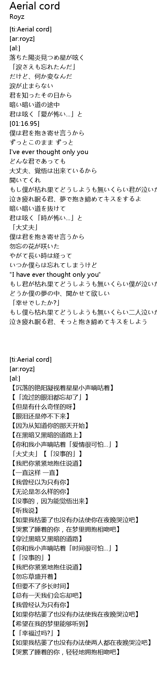 | [01:47.19] | もし僕が枯れ果てどうしようも無いくらい君が泣いた夜は |