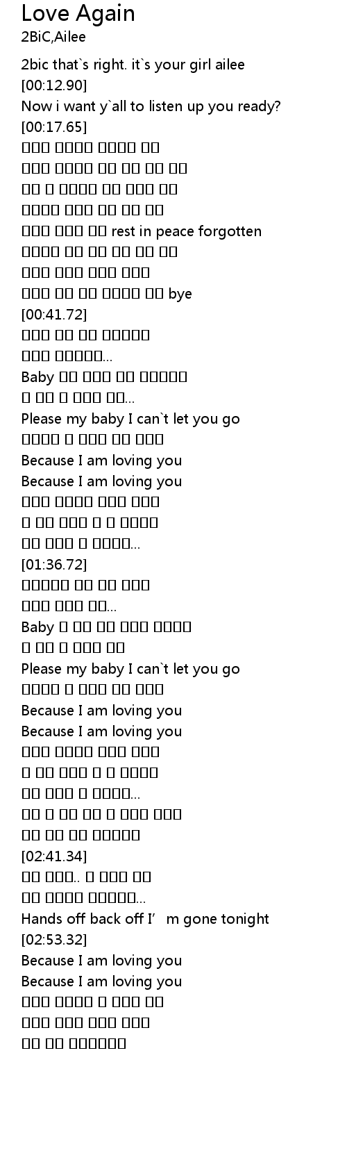 | [00:03.58] | 2bic that`s right. it`s your girl ailee |