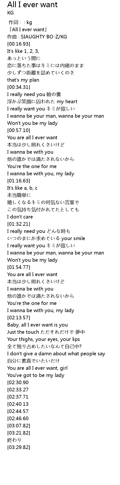 | [03:04.55][02:46.60] | I wanna be with you, my lady |