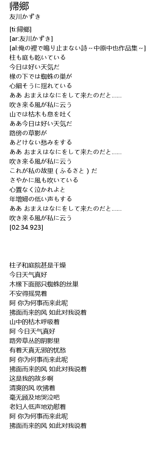 | [02:04.939] | これが私の故里(ふるさと)だ |