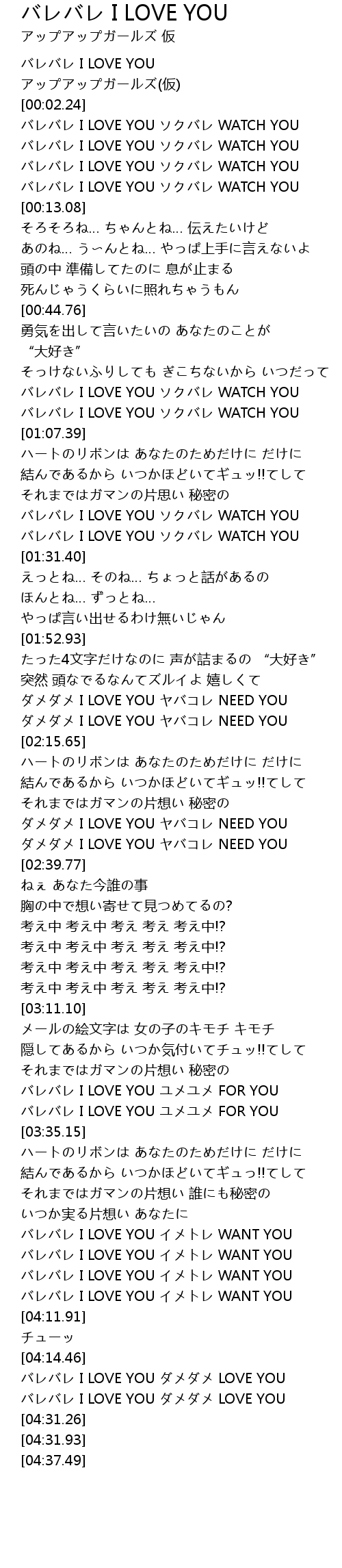 | [01:04.71] | バレバレ I LOVE YOU ソクバレ WATCH YOU |