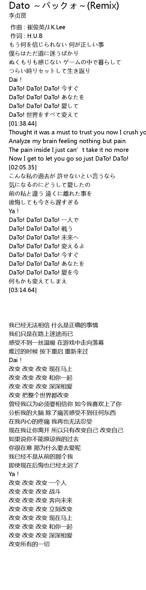 | [03:03.51] | DaTo! DaTo! DaTo! |