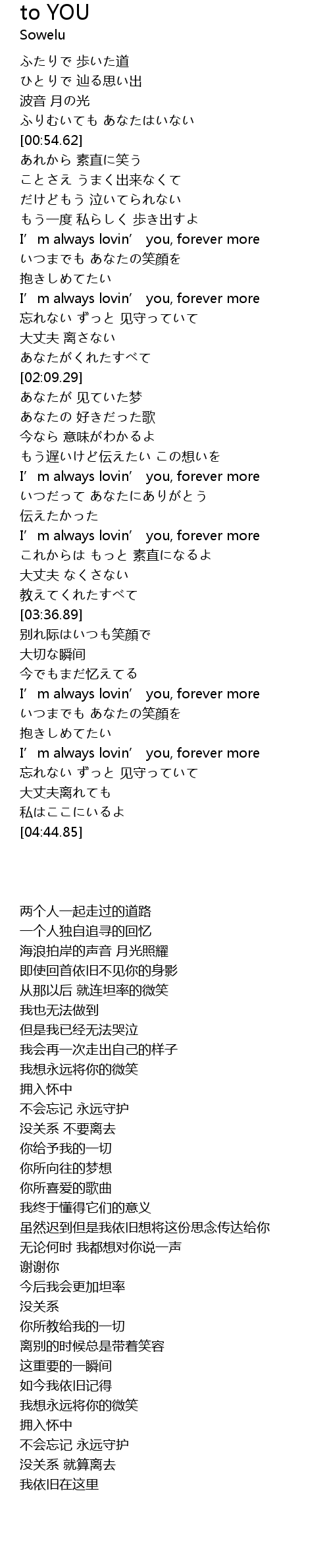 | [04:19.60] | I’m always lovin’ you, forever more |
