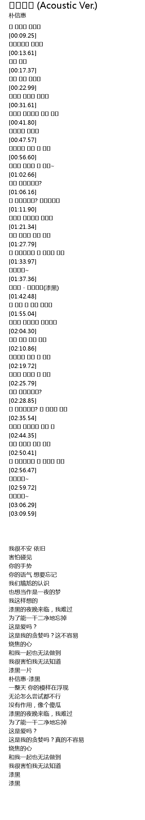 | [01:39.21] | 박신혜 - 새까맣게(漆黑) |