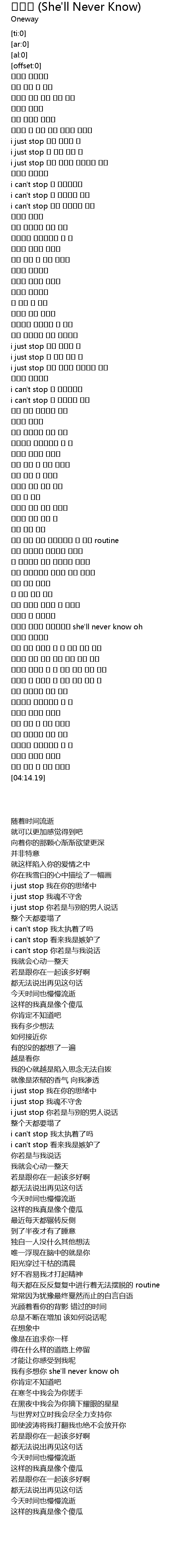 | [00:50.73] | i can't stop 나 질투하나 봐요 |