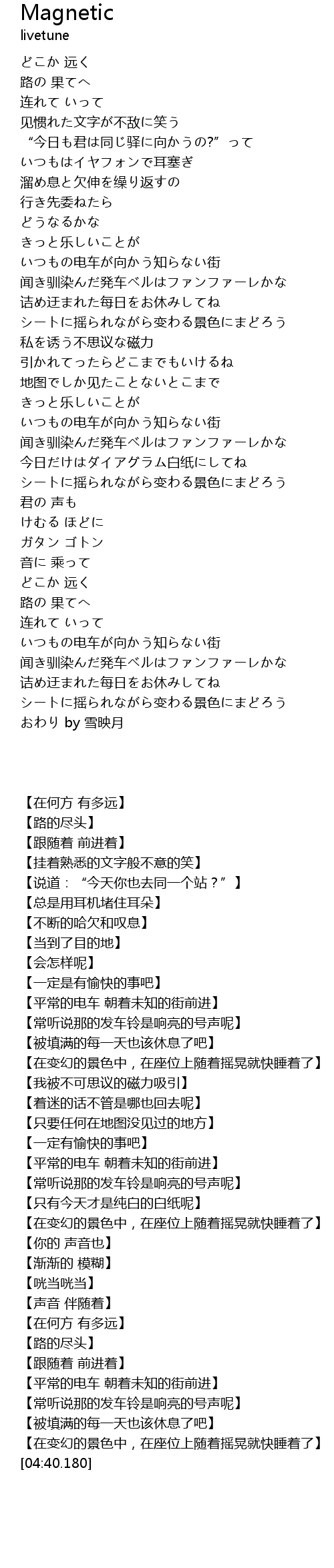 | [02:20.530] | 私を诱う不思议な磁力 |