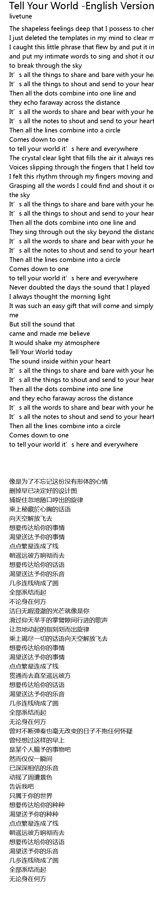 | [03:01.983] | Tell Your World today |