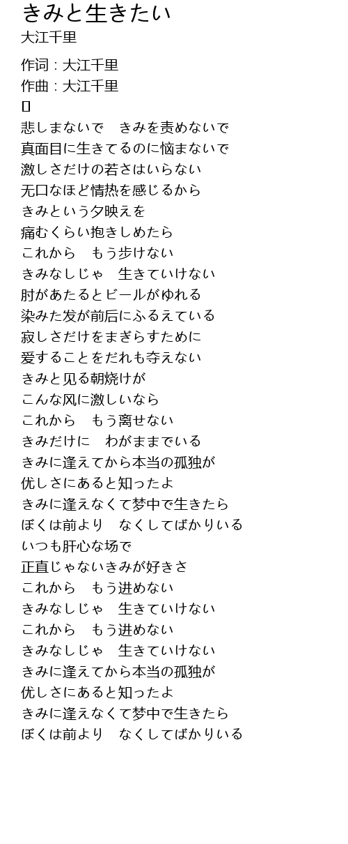 きみなしじゃ 生きていけない |