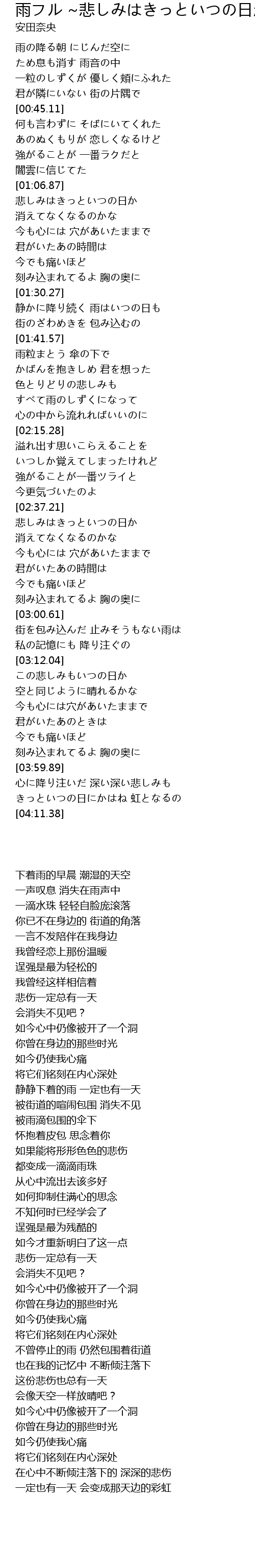 | [04:00.15] | 心に降り注いだ 深い深い悲しみも |
