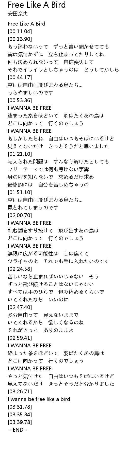 | [00:45.17] | 空には自由に飛びまわる鳥たち... |