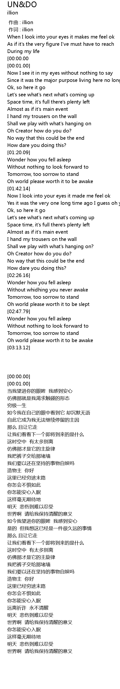 | [00:10.21] | When I look into your eyes it makes me feel ok |