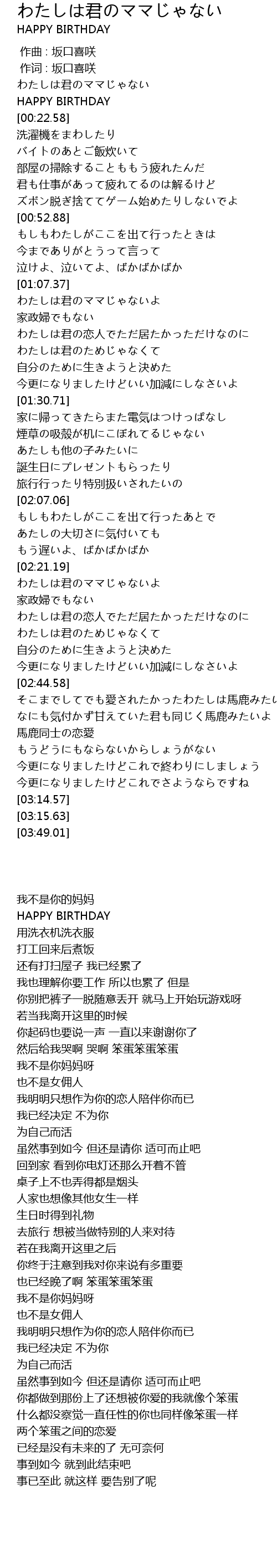 | [00:00.00] | 作词 : 坂口喜咲 |