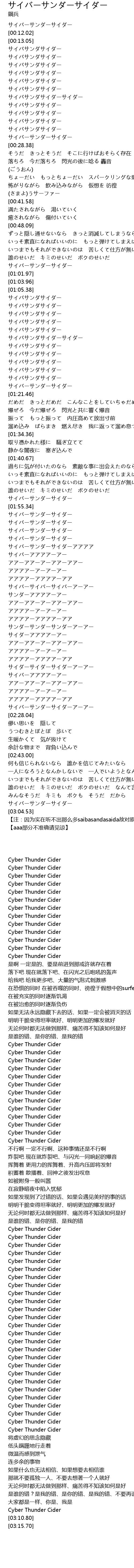 | [02:00.43] | サイバーサンダーサイダーアアアア |