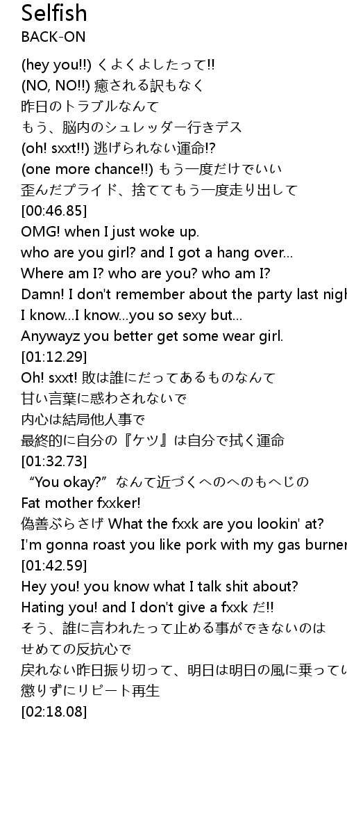 | [01:37.45] | 偽善ぶらさげ What the fxxk are you lookin' at? |